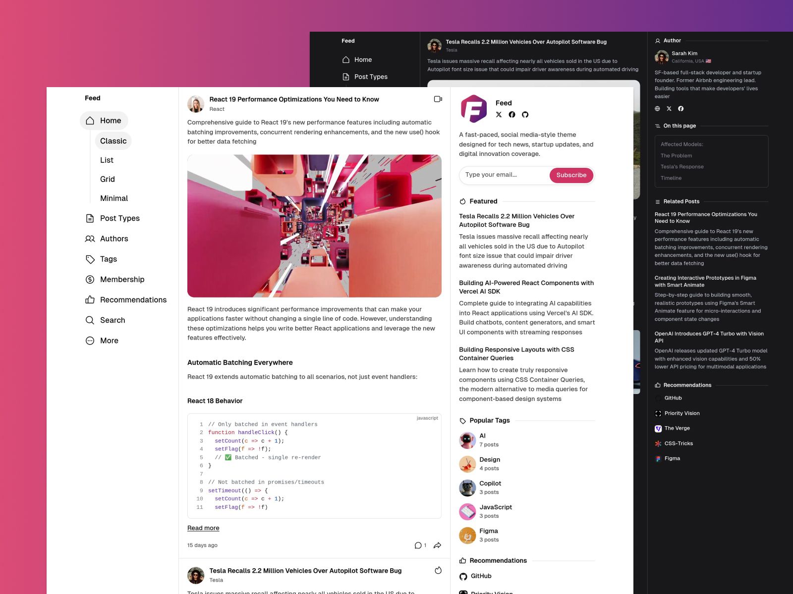 Feed is a fast-paced, social media-style theme designed for tech news, startup updates, and digital innovation coverage. Demo: https://feed.priority.vision/Documentation: https://www.priority.vision/docs/feed/Contact: https://www.priority.vision/contact/ → Included theme files→ Included lifetime updates→ Included one year of technical support